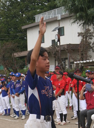 ![]() 三小メッツA岡崎亘主将の選手宣誓. |